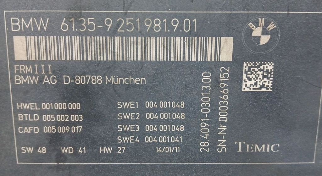 Блок управления светом BMW 5-я Серия F10 F11 9251981 5-Series F10 F11Артикул: AM_ETC81_0215OEM: 61359251981