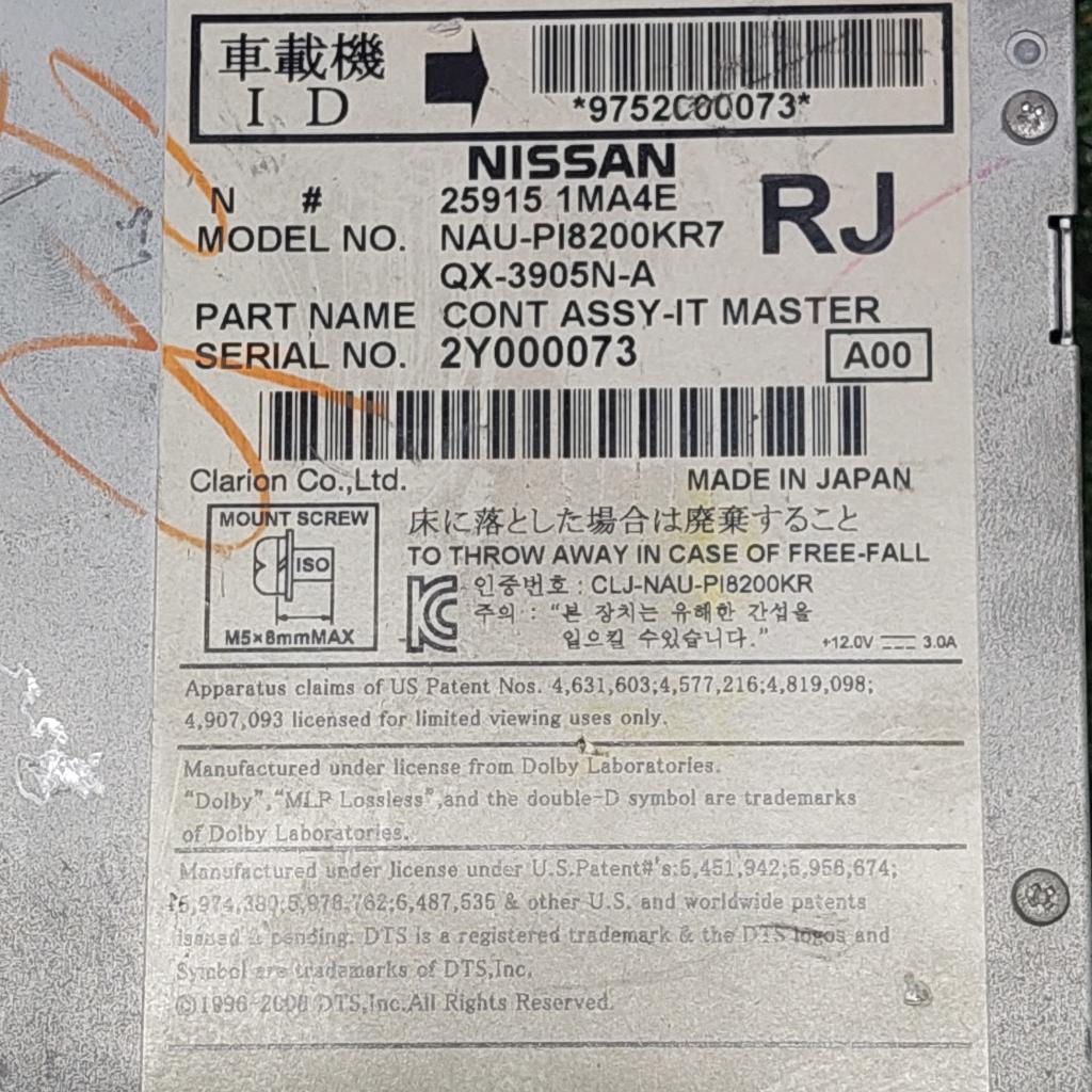 Подробное описание: Инфинити . OEM 259151MA4E GPS Navigation , DVD , Audio . Модель NAU-PI8200KR7 , QX-3905N-A Контроллер IT-master * Цена: 45000.00 руб.