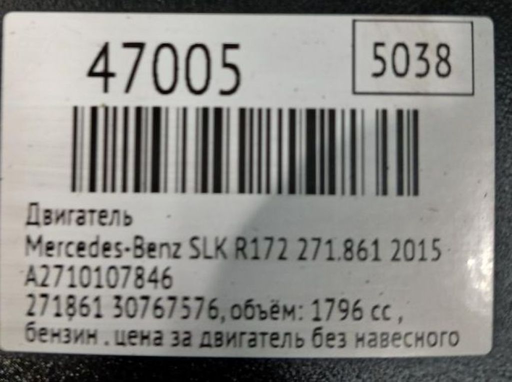 Двигатель Mercedes-Benz 271.861 C200 CGI , голый C-Class , E-Class , SLK-Class R172 W204 S204 W212 S212 M271 271.860 271.861 271860 271861Артикул: AM_EN90_010OEM: A2710107846