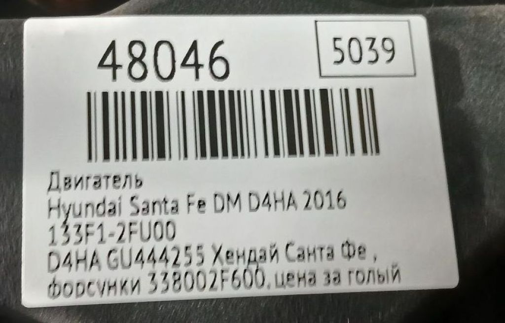 Подробное описание: D4HA GU444255 Хендай Санта Фе , форсунки 338002F600, цена за голый двигатель . * Цена: 240000.00 руб.