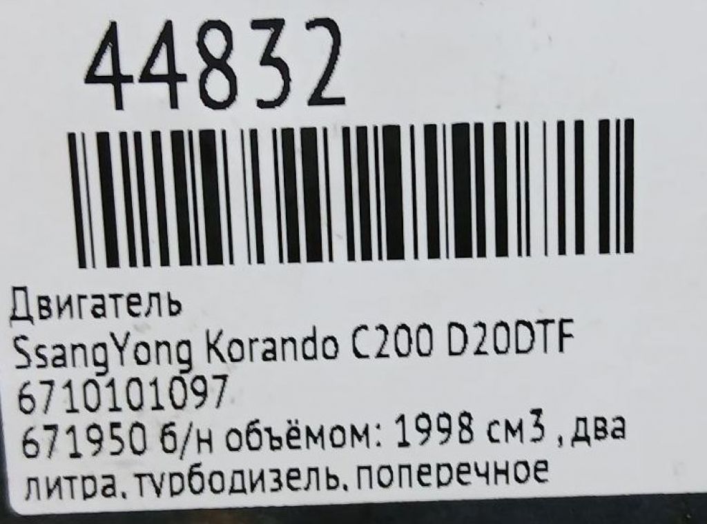 Двигатель SsangYong 671.950 671950 D20DTF New Actyon , Korando C C200 CK 671950, 671.950, D20DTFАртикул: AM_EN88_017OEM: 6710101097
