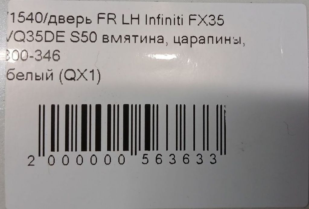 Подробное описание: Инфинити ФХ 45 , цена за голую дверь со стеклом , резинками и молдингом . Вмятина, царапины, толщина ЛКП: 300-346 белый * Цена: 9000.00 руб.