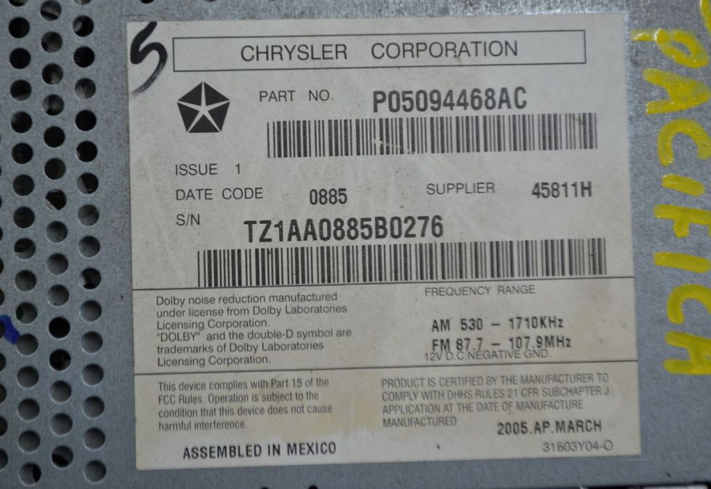 Магнитола Chrysler Пацифика Pacifica CSАртикул: AM_ETC57_0742OEM: 05094468AC