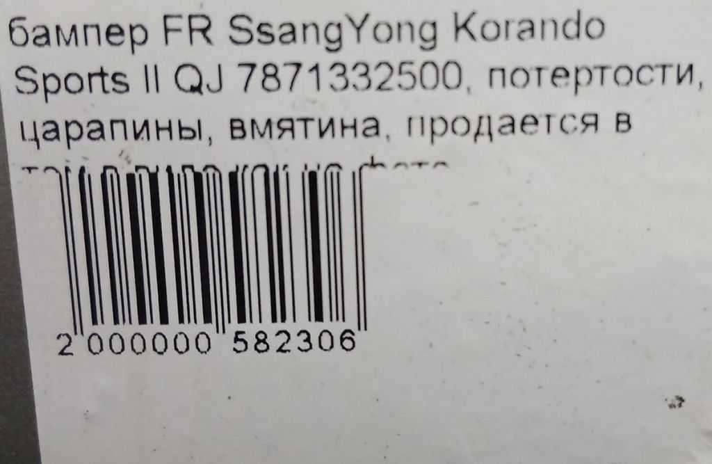 Подробное описание: СсангЙонг Актион Спортс , Корандо Спортс . OEM 7871332500 , потертости, царапины, вмятина, продается в том в виде как на фото * Цена: 16000.00 руб.