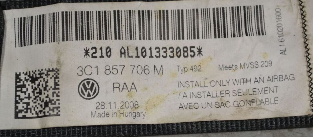 Ремень безопасности Audi / VW Пассат VI FR Passat VI 3C2 3C5 B6Артикул: AM_ETC48_0209OEM: 3C1857706M