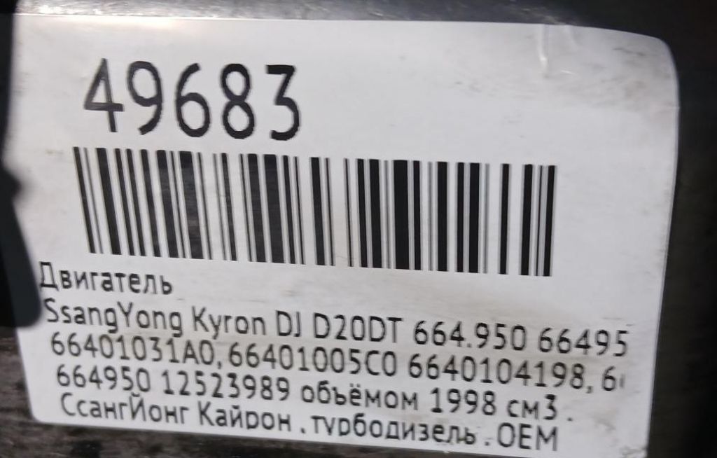 Двигатель SsangYong 664.950, 664950 D20DT EURO III Kyron I DJ D20DT 664.950Артикул: AM_EN90_006OEM: 66401031A0