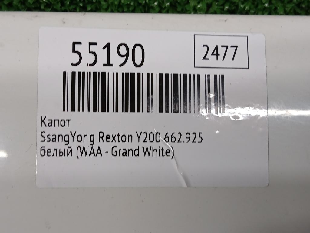 Подробное описание: СсангЙонг Рекстон, б/у (контрактный) из Кореи, оригинал, до 2006г , OEM: 6100108001 Цвет: белый (WAA - Grand White) . Царапины, толщина ЛКП: 70-95 мкм. * Цена: 6000.00 руб.