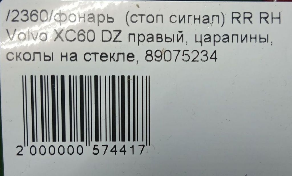 Фонарь задний правый Volvo XC60 I, до рестайлинга , д XC60 I DZ31, DZ40, DZ44, DZ47, DZ52, DZ69, DZ70, DZ71, DZ72, DZ80, DZ81, DZ82, DZ87, DZ88, DZ90, DZ95, DZ98, DZ99Артикул: AM_ETC79_0265OEM: 31290684